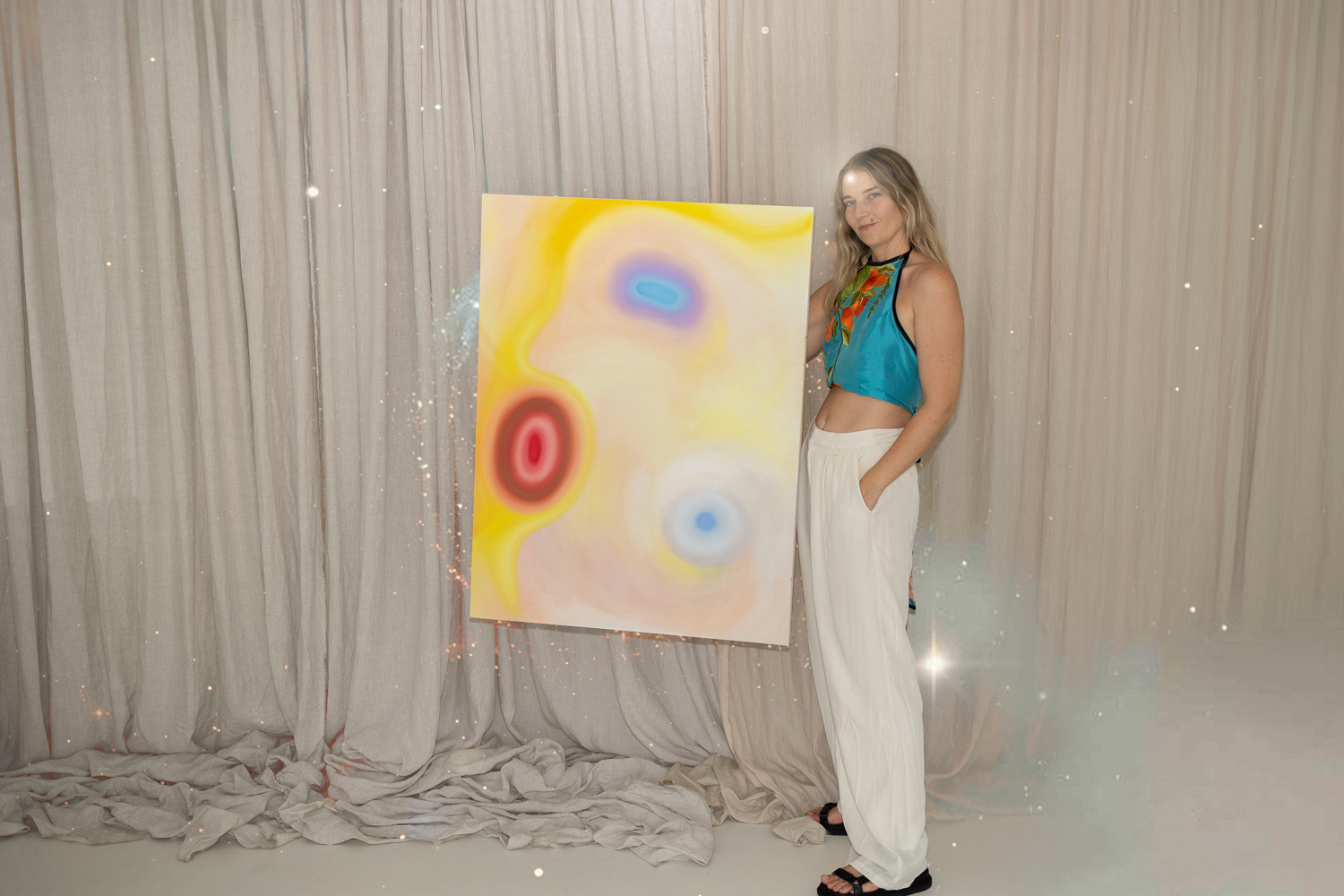 Merilyn’s style is a luminous fusion of ethereal and psychedelic expression, blending vibrant gradients with dreamlike, multidimensional layers that evoke cosmic wonder. Her intuitive process channels healing energies and crystalline frequencies, creating artworks that are as spiritually activating as they are visually captivating. Each piece is infused with angelic and galactic guidance, resulting in a unique alchemy of colour and energy that invites transformation, awakening, and deep self-discovery. Her work resonates as both a visual journey and a spiritual experience, bridging the earthly and the divine with a harmonious, otherworldly aesthetic.